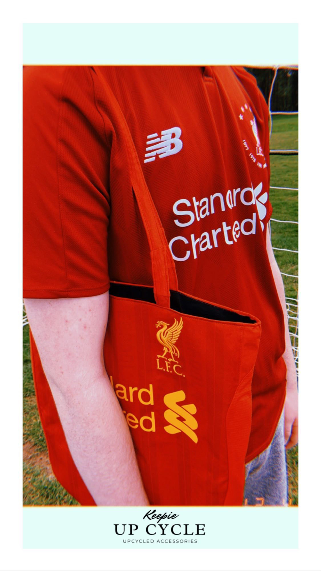 Henceforth, that's where Keepie Up-Cycle was born. I take football shirts that are no longer deemed suitable to wear and turn them into bespoke fashion accessories.